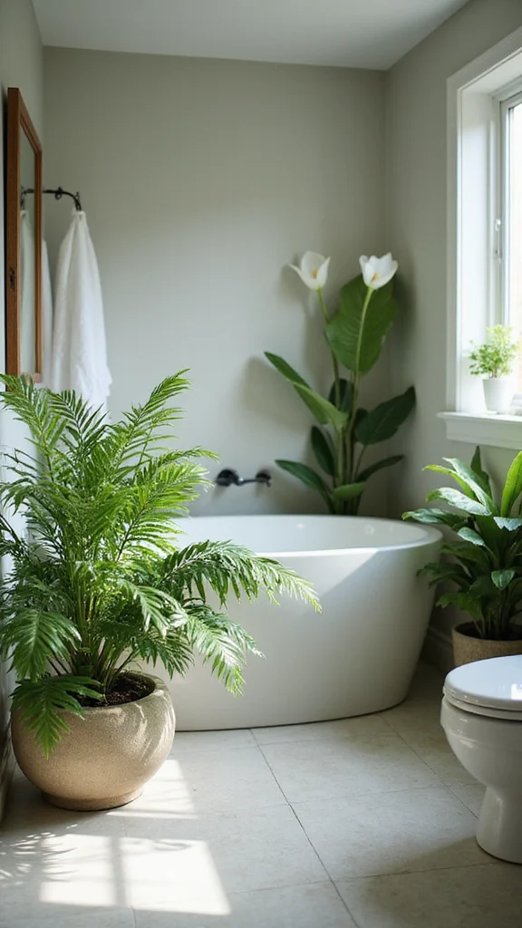 Plants bring life and better air to the bath. Pick ferns, peace lilies, or bamboo that love humidity. Place pots on the floor or hang small planters by windows. A vertical garden adds a lush touch where space allows. Rotate plants to keep them healthy with changing light.