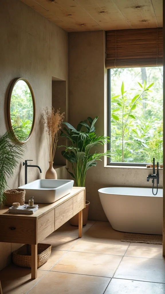 Natural materials knit a warm, inviting vibe into the bathroom. Try bamboo accents, stone surfaces, and wood vanities to echo the outdoors. A textured wall or tile that mimics rock adds depth without shouting. Layer soft towels, bamboo mats, and other textiles for tactile richness. Let elements balance each other so the room feels grounded and calm.