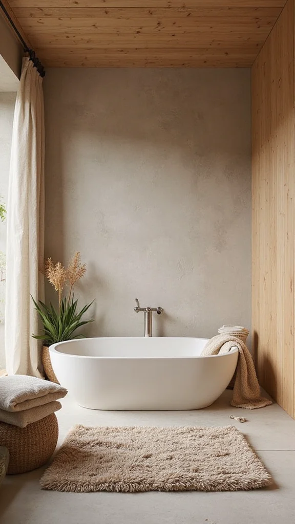 Add textures through woven towels, bath mats, and ceramic vessels to enhance depth.