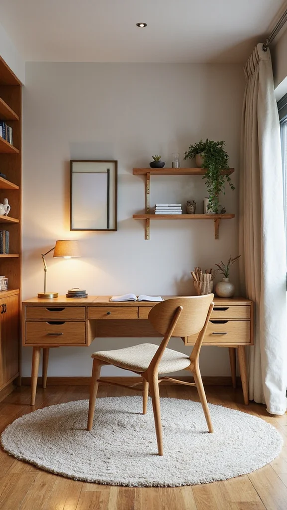 Fun fact: soft textiles in a Japandi office can boost focus by up to 30% by creating warmth and reducing visual clutter. Layer plush rugs and linen cushions to invite longer, more comfortable work sessions without sacrificing calm.