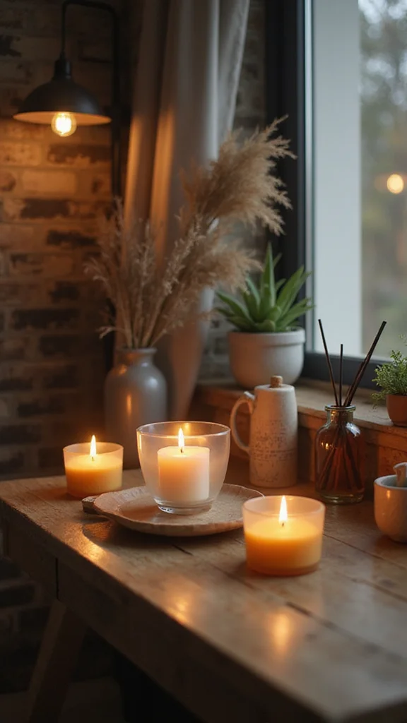 Scents shape how you feel while you work. Diffusers or candles with eucalyptus or lavender help. Natural oils complement Japandi tones and textures. A good scent can calm nerves and sharpen focus. Let fragrance lift mood and ease your day.