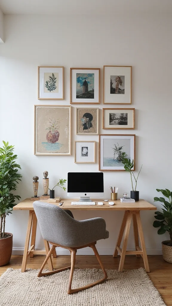 Art fuels creativity and character in your space. Show unique pieces that speak to you. From Japanese calligraphy to Nordic prints, pick what resonates. Create a mini gallery that harmonizes with your palette. A well-curated art collection boosts mood and focus.