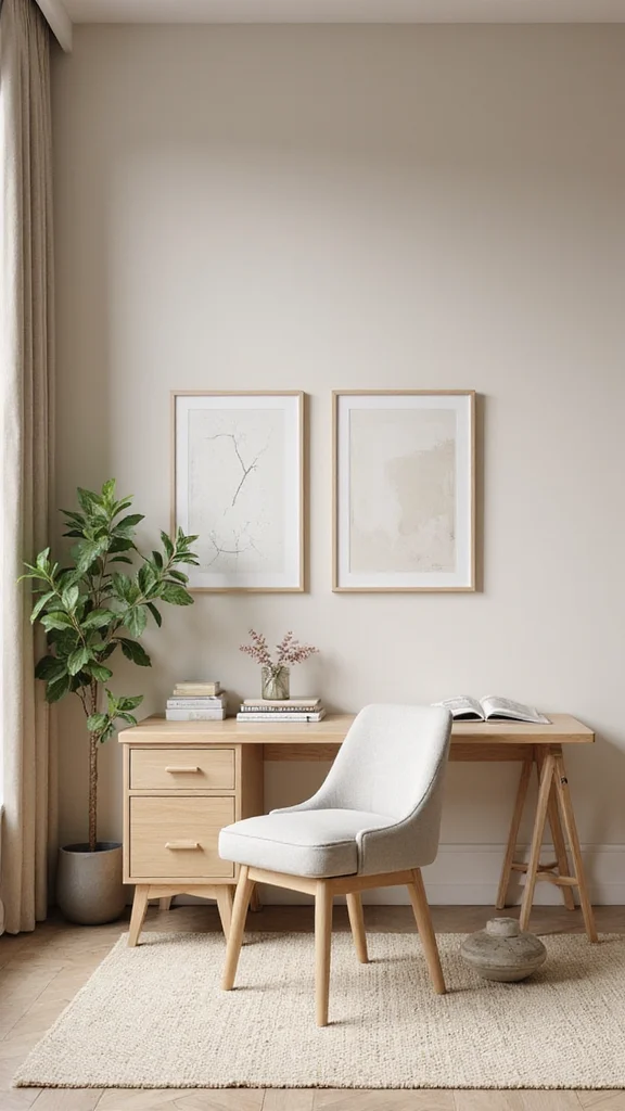 Fun fact: Neutral color palettes can reduce visual clutter by up to 35%, helping you focus longer. Pair light gray walls with cream furniture and a blush accent to keep the space feeling airy. Add greenery to lift the mood without breaking the palette.