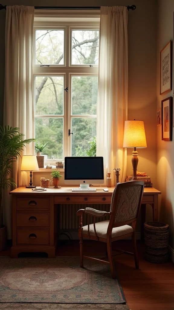 Lighting shapes mood and focus. Use a mix of natural daylight and lamps to create a welcoming workspace. Choose large windows or sheer curtains to invite sun. Pair warm desk lamps with ambient fixtures. Adjustable lighting keeps eyes happy and space inviting.