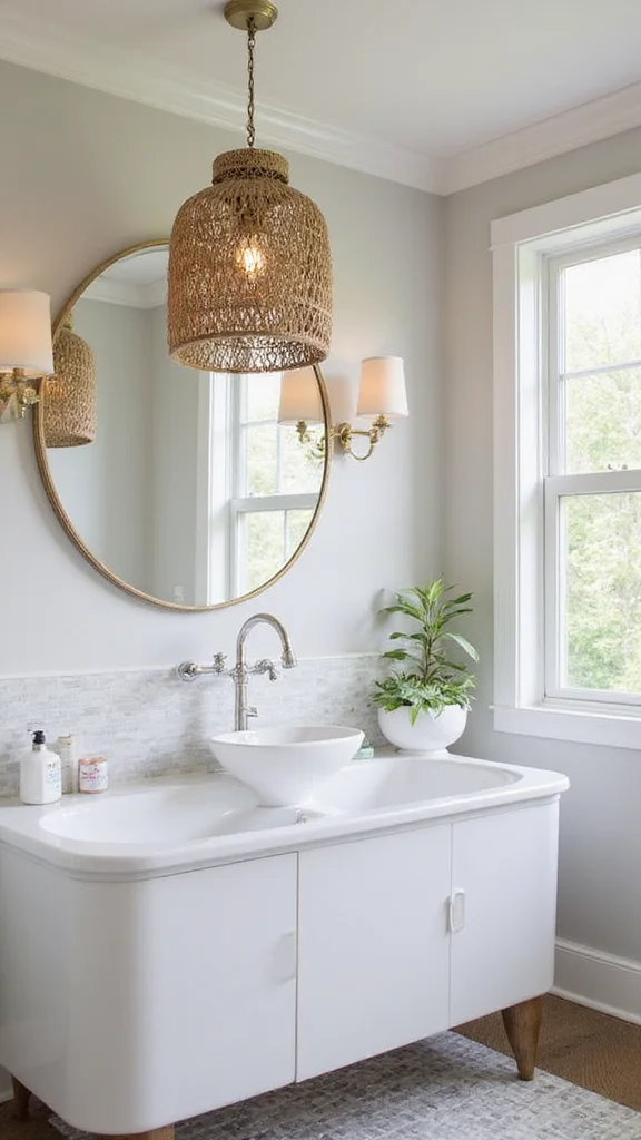 Fun fact: warm 2700K bulbs boost the boho bathrooms idea, making the space feel about 20% cozier. A dimmable pendant above the mirror lets you dial mood from soft glow to bright focus, while the fixture doubles as art.