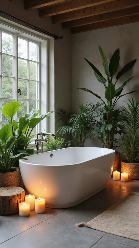 Fun fact: a well-sealed natural stone bathtub can last 50+ years, making it a lasting boho bathrooms idea. Choose limestone or soapstone, then pair with wooden trays and candles for a serene, practical retreat.