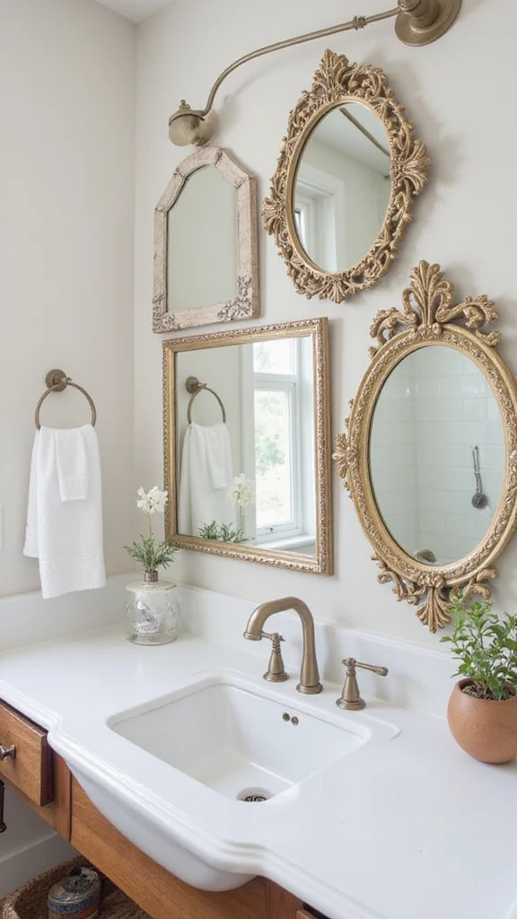 Use vintage frames for instant character. Create a gallery with several small mirrors. Choose antique finishes for added charm. Pair with soft lighting to reflect warmth.