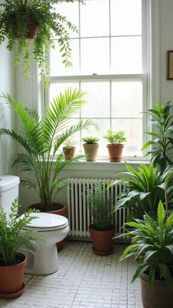 • Choose humidity-loving plants like ferns and pothos