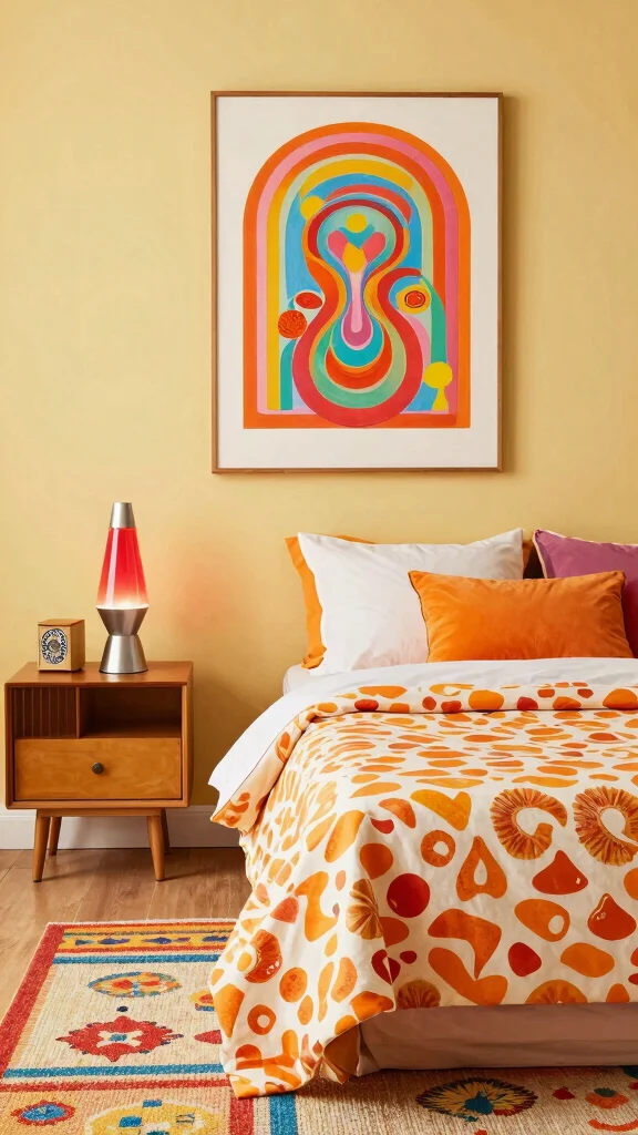 The 70s come alive with bold colors and playful patterns. A standout wallpaper or art piece acts as the eye catcher. Thrifted furniture adds authenticity and saves money. Velvet chairs, groovy rugs, and quirky lamps pull the room together. This vibe thrives on texture and joy, so lean into it. It feels bright, warm, and full of character.