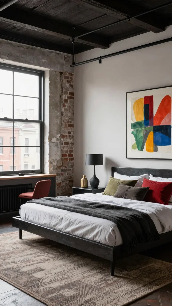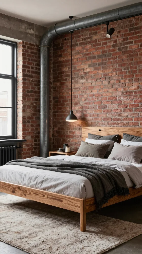 Fun fact: 62% of designers say when you mix exposed brick or concrete with warm textiles, bedrooms feel cozier and more inviting—perfect for a bedroom ideas vibe. Start with a sturdy wood bed, add metal accents, then layer soft textures for contrast.
