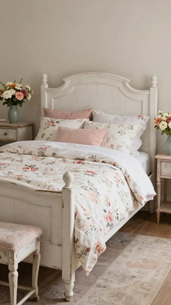Shabby chic blends soft romance with vintage charm. Start with a white-washed bed and pair it with floral bedding for a gentle, feminine touch. Sourcing second-hand items or DIY pieces makes the look friendly to budgets. Distressed furniture, such as a worn dresser, adds character. Soft lighting with fairy lamps creates a cozy glow. Fresh flowers or greens finish the feel with life and scent. The result is a delicate, happy space that feels lovingly cared for.