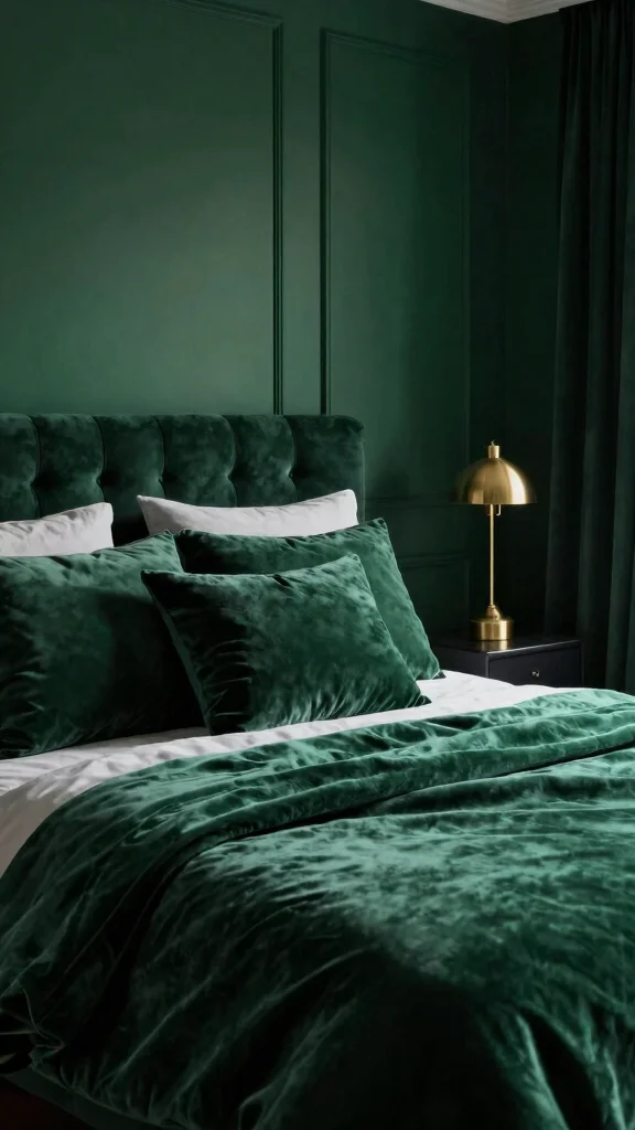 Moody jewel tones turn a bedroom ideas vibe into a calm, elegant refuge. Start with an emerald feature wall, then layer velvet pillows and sustainable fabrics for texture that lasts. Finish with eco-friendly paints and brass accents for planet-friendly glam.