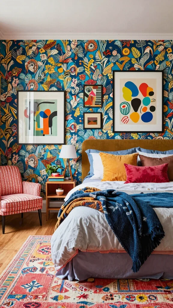 Maximalist bedrooms celebrate color, texture, and story. A bold feature wall, striking wallpaper, or a gallery wall sets the stage for bold art. Mix vintage finds with contemporary pieces to create a room that feels alive. Upcycled items and artisanal crafts keep the space grounded in sustainability. Layered textiles—patterned throws, vibrant rugs, and a tapestry of color—build depth. The look is lively, a bit unruly, and entirely personal. It invites exploration and daily delight, a space that feels both chaotic and welcoming.
