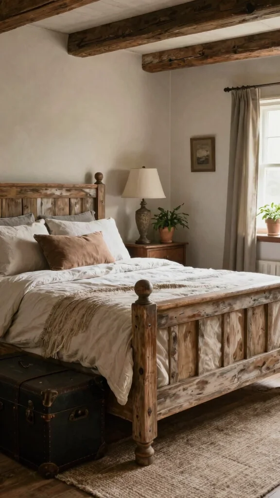 Rustic farmhouse charm brings nature inside with honest materials. Start with a distressed wood bed frame and mix in antique linens for warmth and history. Locally sourced furniture and handmade decor support a community feel. Natural fabrics like cotton and linen keep the space breathable. Vintage trunks and mismatched lamps add character. A touch of greenery from herbs or fresh stems makes the room feel alive. It’s easy to tune this look for any home while keeping it cozy and inviting.