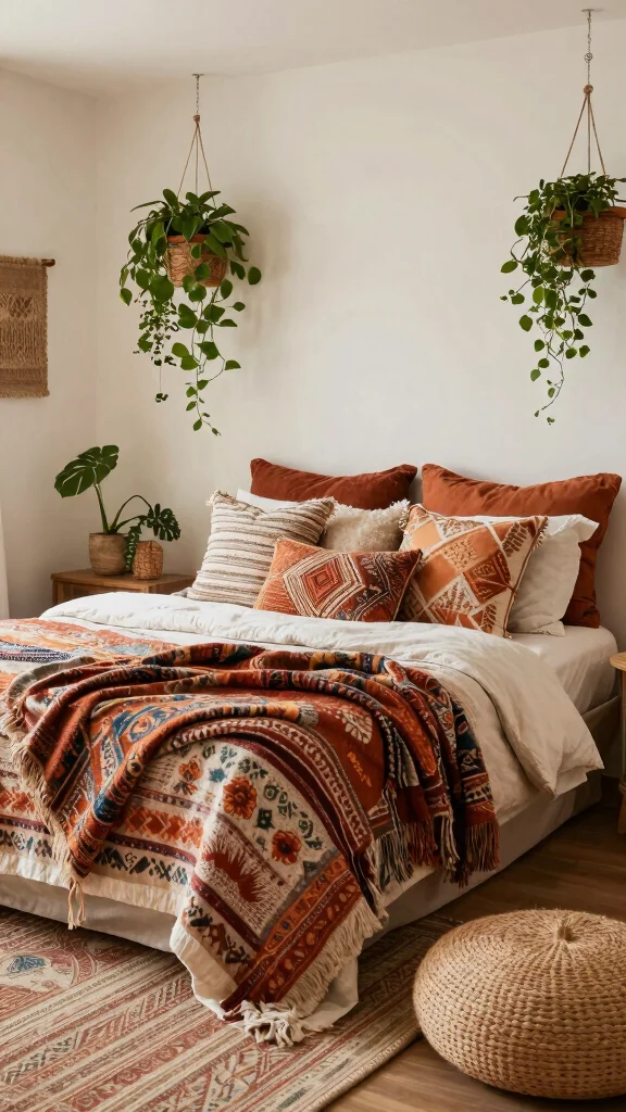 Bohemian rooms flow with warmth and color. Start with a neutral base and layer deep tones through textiles. Think patterned blankets, woven rugs, and an array of decorative pillows. Handmade items from local artists or thrift finds keep the feel grounded and responsible. Natural materials like jute and cotton add warmth. Plants in macrame planters or a tall leafy plant bring life. The goal is a relaxed, welcoming space that tells a story.