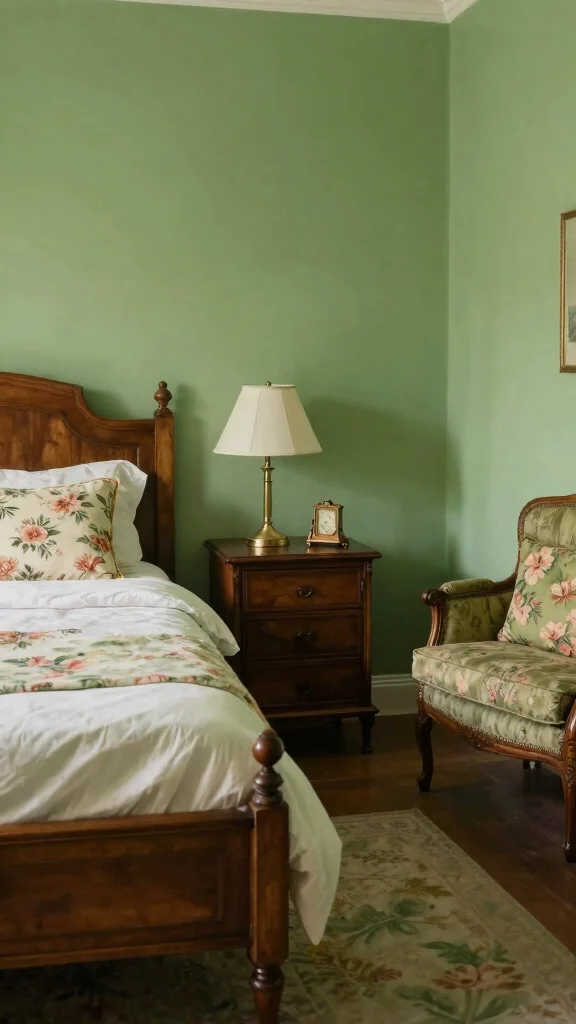 Vintage greens bring nostalgia with a warm twist. Mint or olive walls pair with retro furniture for a cohesive look. Floral pillows or antique lamps add character and glow. This style invites personality and charm, perfect for quirky dcor lovers.
