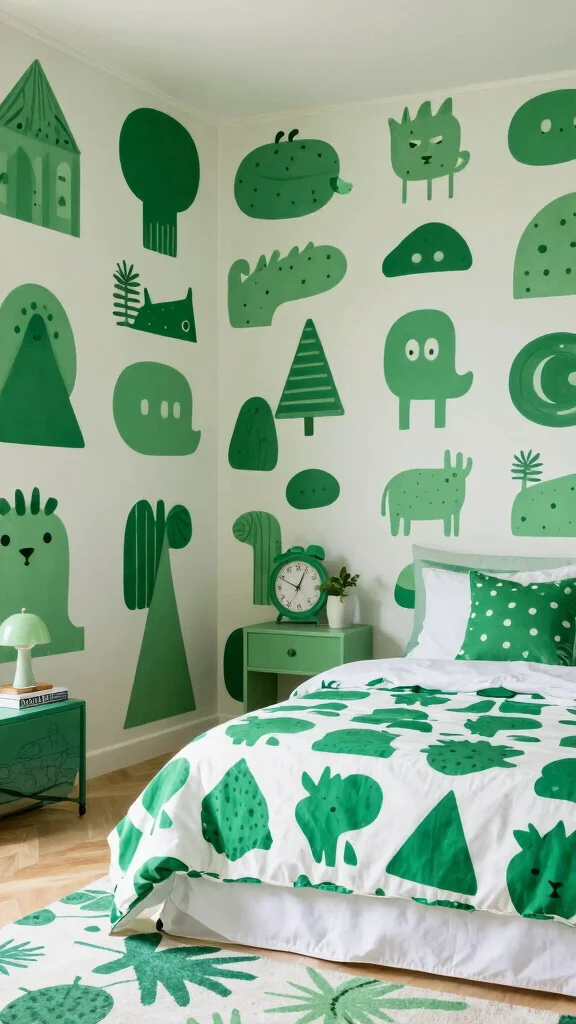 Playful patterns bring life and energy to the space. Try green floral or geometric wallpapers for a bold twist. A feature wall can become the room’s focal point while simple furniture keeps balance. This approach creates an upbeat mood that stays comfy and inviting.