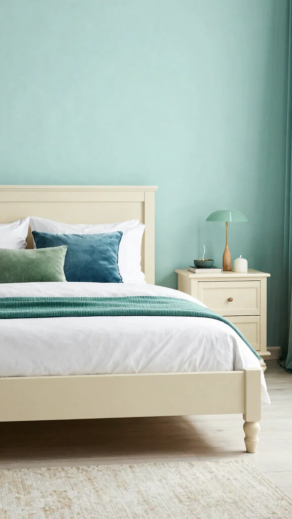 Light teal blends blue and green for a calm, airy feel. Pair it with cream or white furniture for openness. Deep teal or indigo accents add depth, while natural textures like wood deepen the tranquil vibe. This combination feels balanced and elegant.