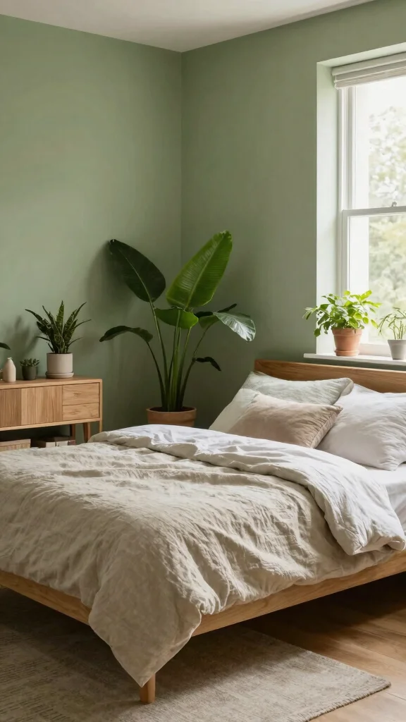 Soft sage, muted olive, and dusty mint read as tranquil and approachable. Test swatches in natural light and pair them with warm whites or creamy neutrals.