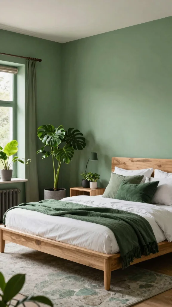 Vibrant jungle greens make a bold statement in the bedroom. Paint walls in bright shades or use large botanical prints for drama. Pair with neutral furniture to let the greens pop, and add lush greenery like monstera for a true jungle vibe. This style feels alive and energizing.