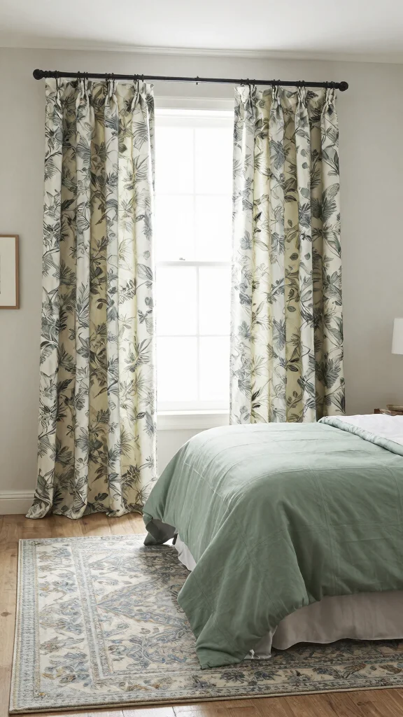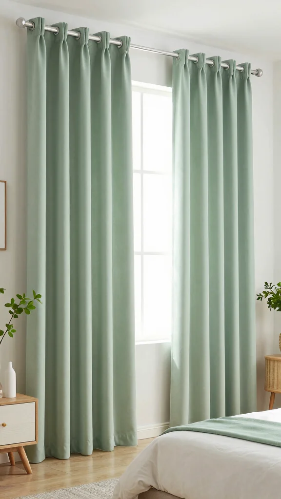 Sage green curtains frame windows while keeping the look airy. Light fabrics like linen or chiffon let natural light filter through with ease. Consider pairing with sheer panels for depth and opt for floor-to-ceiling lengths to add height.
