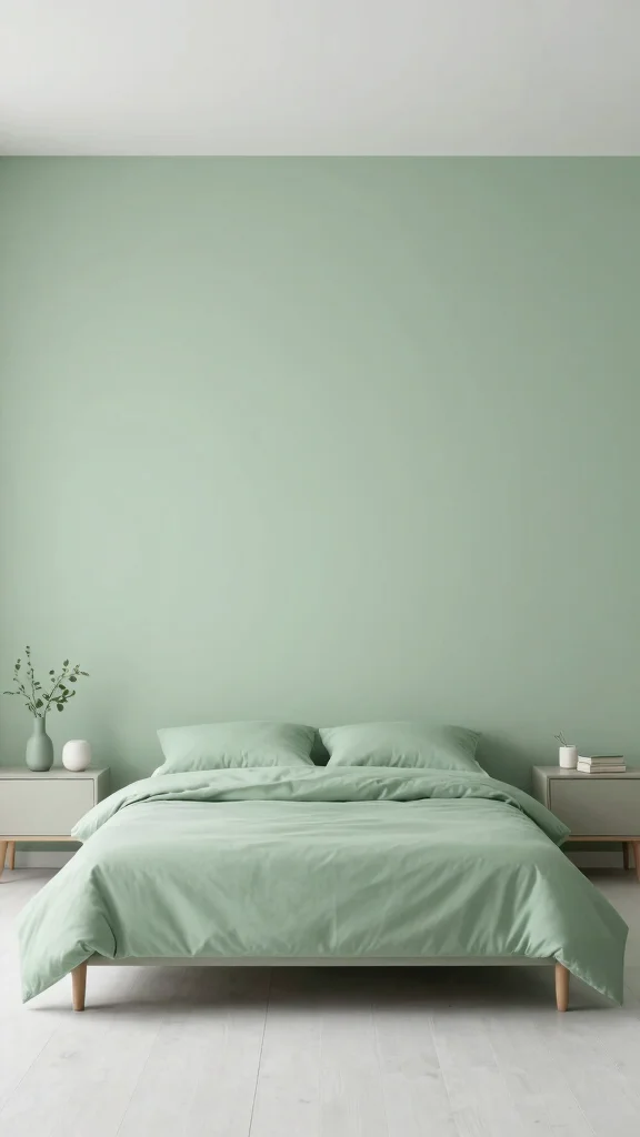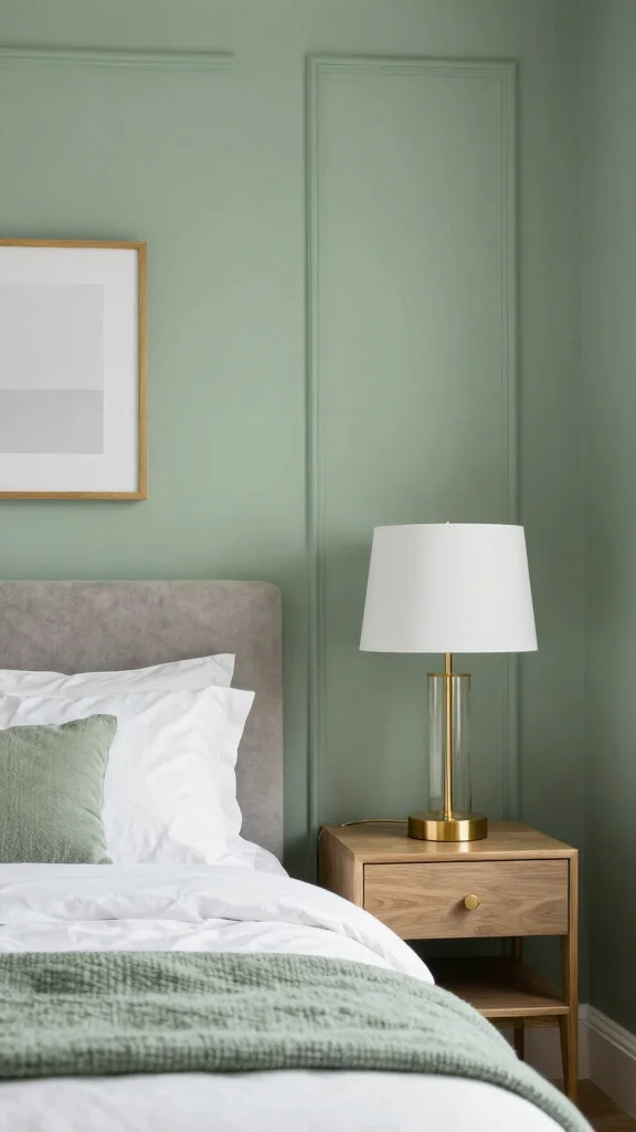 An accent wall lets sage green shine without taking over. Choose the wall behind the bed to create a clear focal point. This touch adds depth and can make a small room feel larger. Design sources praise this quiet, refined look.