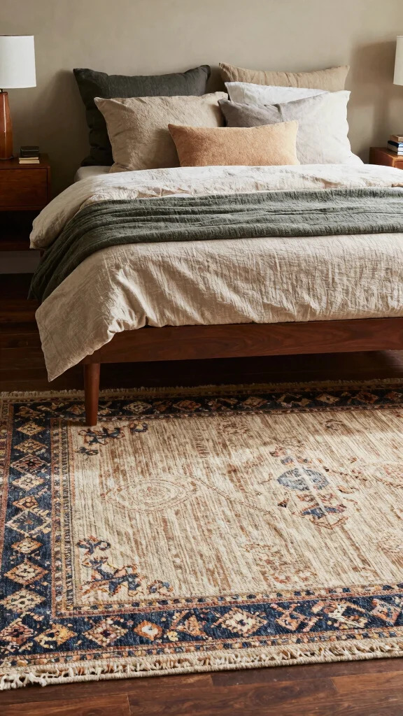 Fun fact: 2-3 textures layered in a mid-century modern bedroom can boost perceived warmth by 30% without heavy tones. Wool, linen, and cotton catch light in subtle ways. Pair a plush rug to anchor the look.