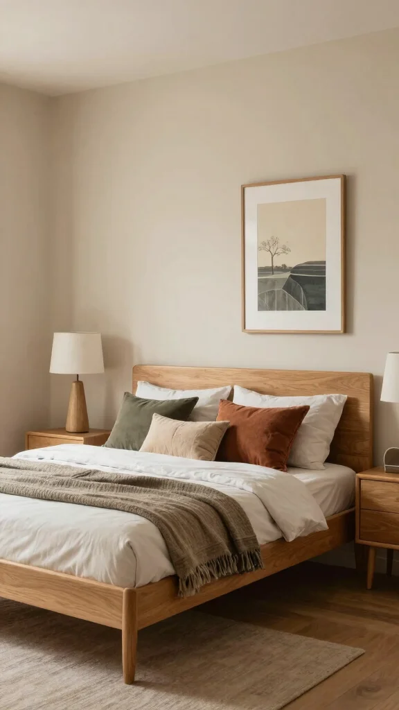 This simple, natural palette makes your bedroom feel grounded, warm, and timeless.