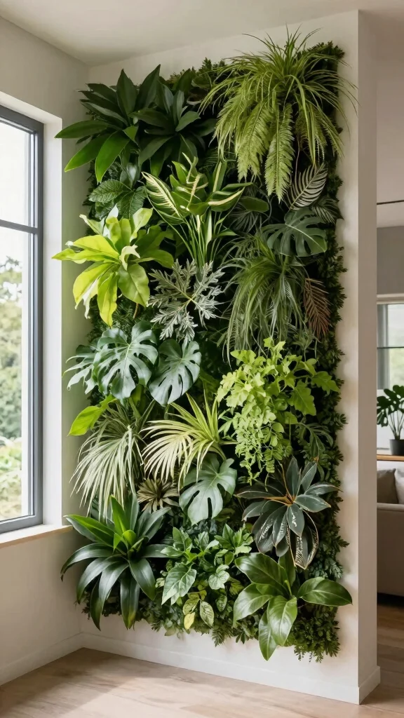 – Use a vertical plant wall to add greenery without taking up floor space, enhancing relaxation.
