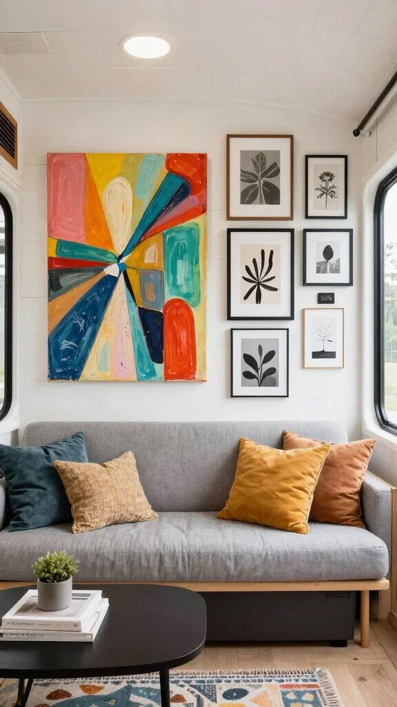 Let art tell your story. Pick pieces that spark joy or calm. A large canvas or a gallery wall can become the room’s heartbeat. DIY art adds personality without a big price.