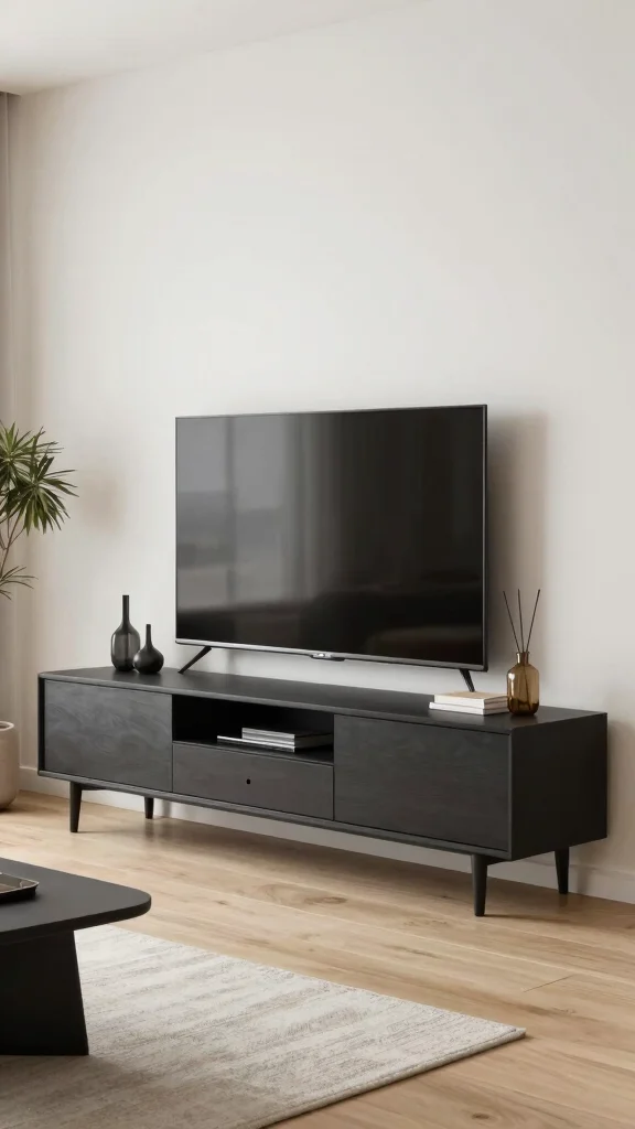 A tidy entertainment space helps the whole room feel calmer. Go low with a slim stand that hides media gear and wires. Wall mounting saves floor space and keeps the look clean and neat.