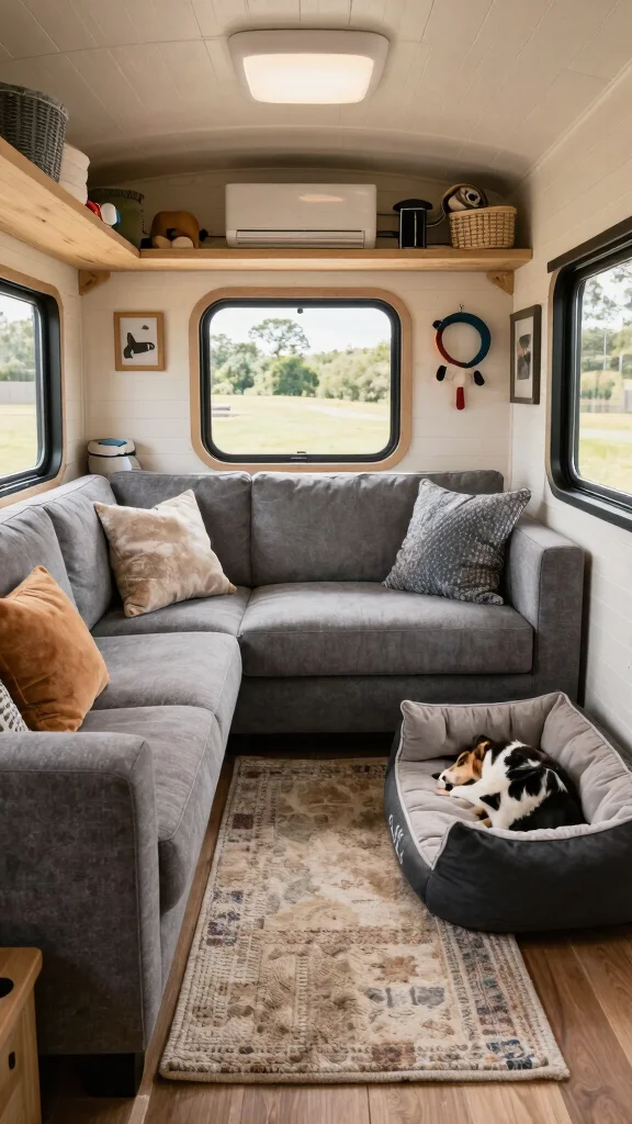A shared home with pets needs sturdy, easy-care decor. Choose durable fabrics and stain-resistant finishes. Give pets a comfy bed area that still looks stylish. Keep toys and bowls tucked away to protect surfaces.