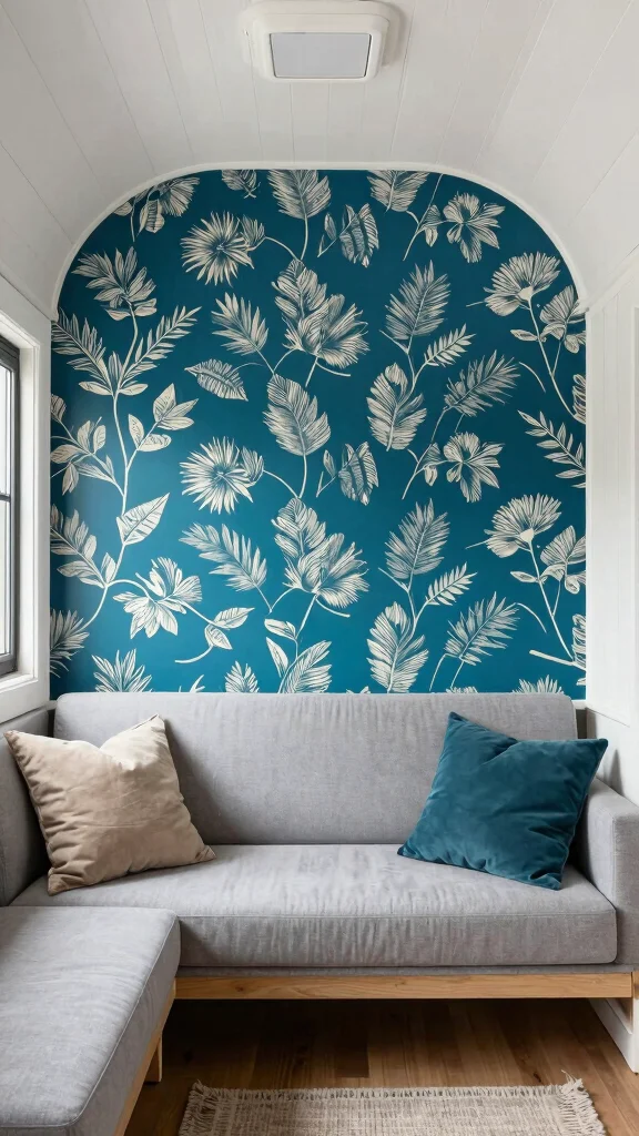 A bold accent wall does more than color—it’s a visual shortcut to personality in a modern tiny house living room. Pick a color or pattern that sparks joy, and watch the space feel bigger without crowding it.