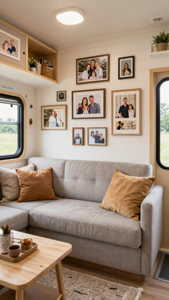 Personal items tell your story and make the room feel alive. Display family photos in a gallery wall, or group travel souvenirs on a shelf. DIY crafts add unique charm and warmth, turning the space into your true home.