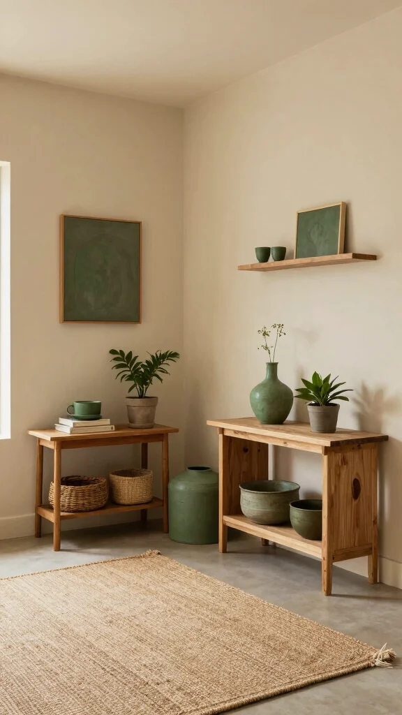 Choose a few grainy pieces to add depth. Pair heavy wood with neutral fabrics for balance. Layer stone with soft textiles for warmth. Add a few plants to finish the look.