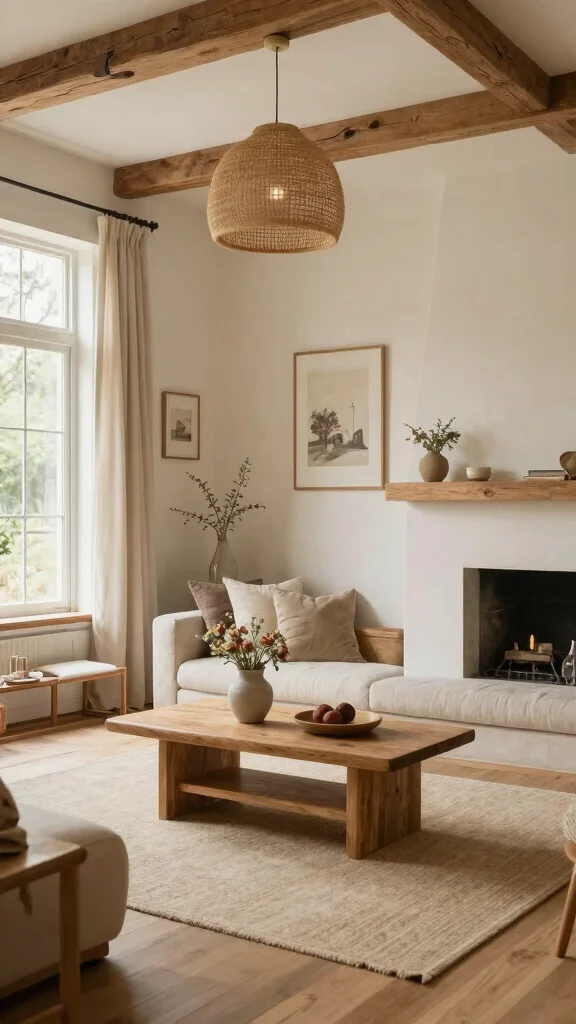 Earthy tones create a soft, inviting mood. Walls in taupe or beige let wood and stone shine. Greens or soft blues echo nature. This palette shows up in modern rustic rooms.