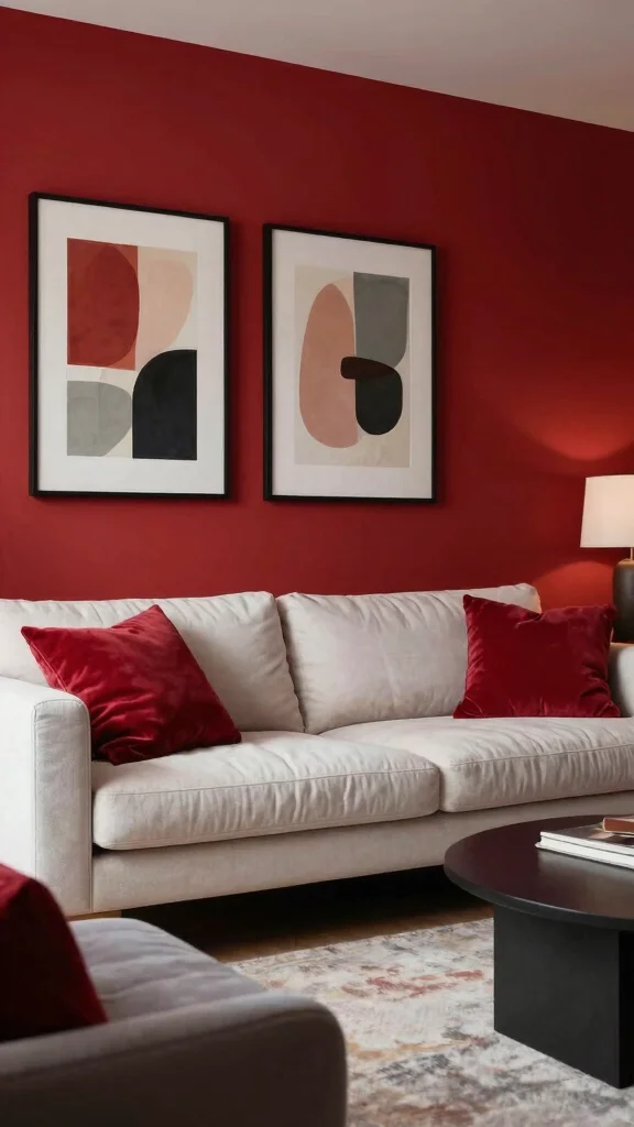 Crimson red makes a room feel bold and full of life. It creates a strong, confident backdrop that catches the eye from across the room. Use it on a feature wall or behind a desk to spark focus and energy. Pinterest fans this shade in modern spaces, showing how a single wall can redefine a space with drama and warmth. The result is a room that feels vibrant yet inviting, not loud when balanced well.