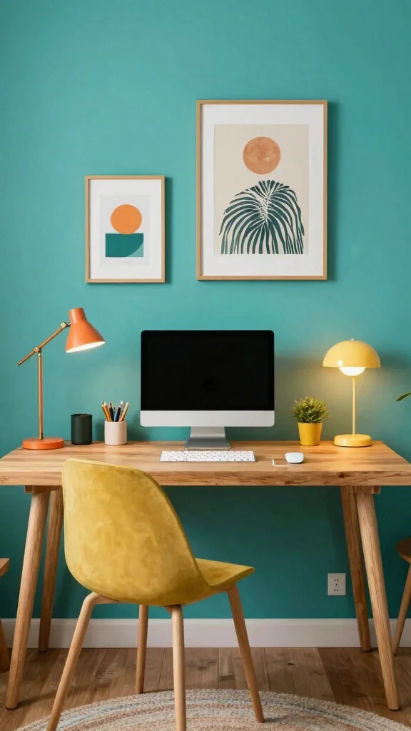 Teal brings a lively, creative spark to a room. It works well in living rooms or home offices where focus and conversation thrive. The color pairs nicely with gold or orange to create a balanced, warm contrast. Use teal on a feature wall to highlight the hue while keeping other walls light. Add metallic accents and natural wood for a grounded, stylish mix.