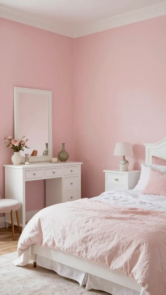 Blush pink is soft, romantic, and versatile. It can turn a bedroom into a quiet retreat or a feminine living area into a calm space. When paired with metallic accents like gold or silver, blush feels modern and polished. Use it as an accent or paint all walls for a dreamy vibe. Combine with vintage furniture for timeless charm, and add plush textiles to deepen the welcoming, cozy mood.