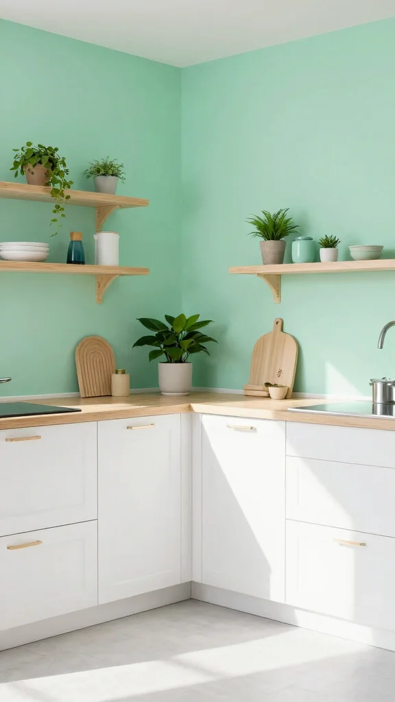 Fun fact: Mint green as a home wall colour can visually brighten a small kitchen by about 20% and feel more spacious. Pair it with white or dark wood accents, use mint on an accent wall, and finish with plants for a fresh, calming vibe.
