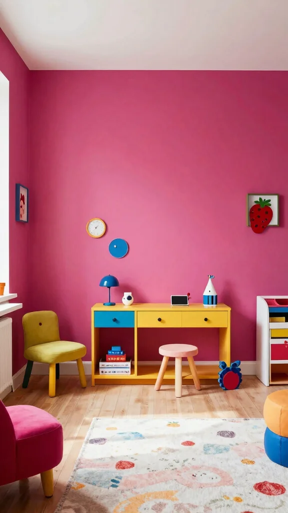 Bright berry brings cheerful energy to any space. It works nicely in children’s rooms or creative zones where play and imagination thrive. Berry tones shine as accents, providing a playful spark without dominating the decor. Pair with soft neutrals to keep balance, or use it on furniture for a bold statement. Add whimsy with decor that mirrors the color’s lively spirit.