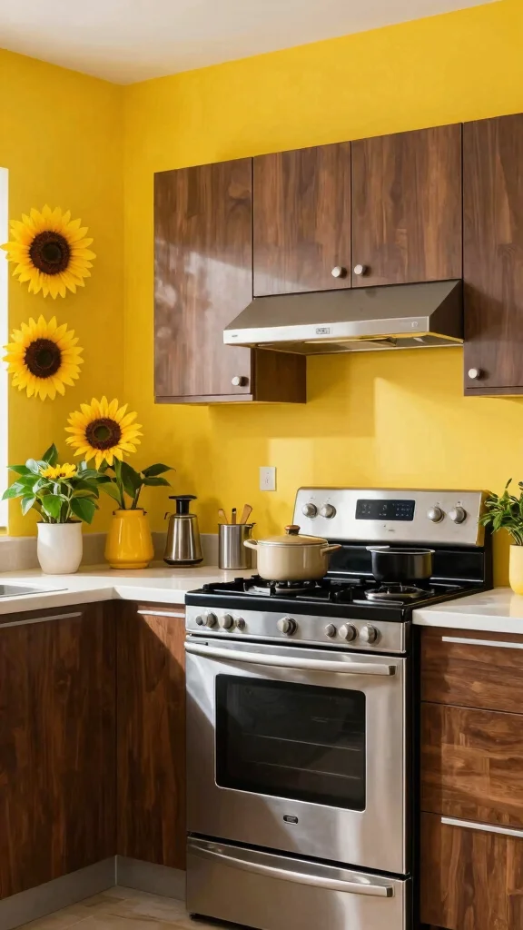 Bright sunflower yellow brings a sunny lift to any room. It energizes kitchens or play areas and makes spaces feel cheerful. When paired with dark woods or stainless steel, it creates a crisp, modern contrast. The glow it adds can lift moods and spark conversation, turning ordinary days into lively moments. It feels both friendly and stylish when used thoughtfully.