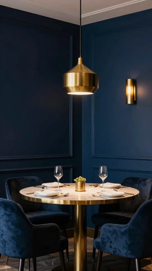 Deep navy blue anchors a room with timeless elegance. It reads luxe, especially when paired with gold or brass accents. This shade shines in a cozy reading nook or a refined dining area. The key is good lighting so the color never feels heavy. White or cream elements balance the depth and keep the space inviting. Navy offers drama without shouting, a quiet confidence for specialty rooms.