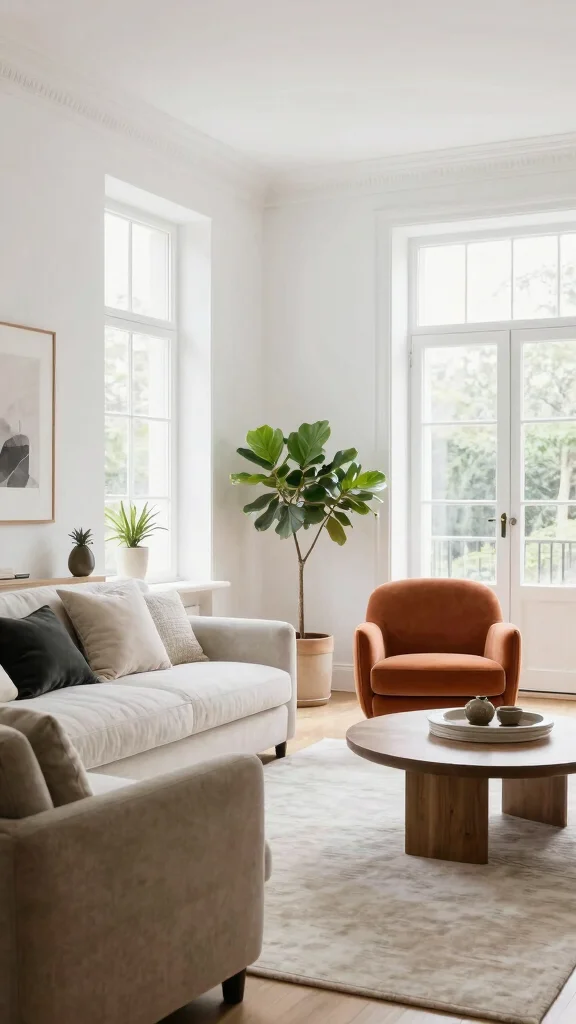 Crisp white creates a clean, airy canvas. It makes small rooms feel larger and serves as a quiet stage for bold furniture. White also invites natural light and helps artwork glow. Add variety with textures like linen, rattan, and greenery to avoid a sterile vibe. A layered look with off whites adds warmth while keeping the space bright and open.