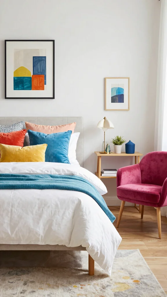 Bold colors are an easy way to wake a bedroom without a full renovation. Add color through pillows, textiles, or a standout chair. Accents pull the palette together and create energy.