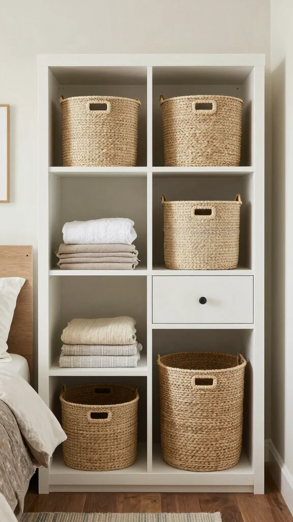 Smart storage keeps the room neat while boosting style. Under bed bins, woven baskets, and multi functional furniture save space without crowding. It helps you live more simply and look cleaner.