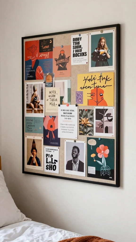An inspiration board keeps ideas fresh and personal. Pin quotes, photos, and fabric swatches to capture your mood. Use textures and colors to boost the eclectic vibe.