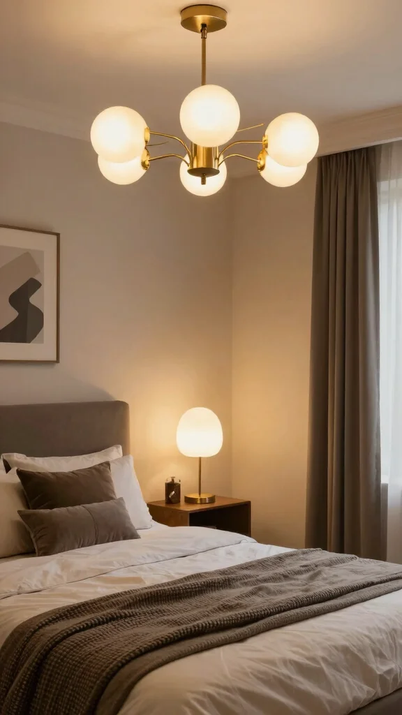 Lighting changes everything in a bedroom. Rather than one ceiling light, add a mix of overhead, task, and ambient sources. A pendant or chandelier can serve as a focal point, while bedside lamps add warmth. Look for designs that echo your overall style.
