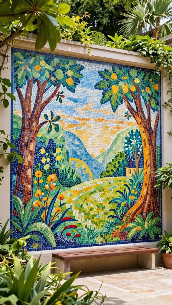 Bright mosaic murals bring color and character to outdoor walls. They are built from glass or ceramic pieces that stand up to weather and sun. Place a large mural as a focal point near seating or entry to set the mood. Pinterest often showcases these as statement accents, proof that color can shape a space.