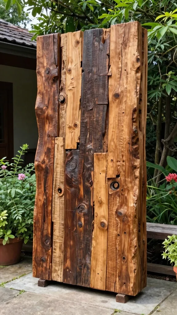 Seal the wood with a weather-resistant finish to enhance durability. Combine different types of wood for a multi-toned effect. Use this art to create a rustic focal point in your garden. Mount on a sturdy backer board for stability.